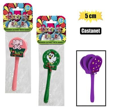 Musical wood castanet on handle 5.5x5cm