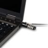 This solid security cable for computers and other peripherals with a T-notch slot is the solution to secure your devices. The 4-digit resettable code allows for up to 10,000 combinations and the rotating head provides easy access. It is strong and durable with a steel braid cable coated in transparent PVC.