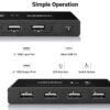 With USB 2.0 support, the switch enables high-speed data transfer rates of up to 480Mbps, ensuring fast and efficient performance for high-bandwidth devices. Its plug-and-play design eliminates the need for drivers, making installation quick and hassle-free. Additionally, the switch features a dedicated micro-USB power port for stable operation when connecting high-power consumption peripherals.